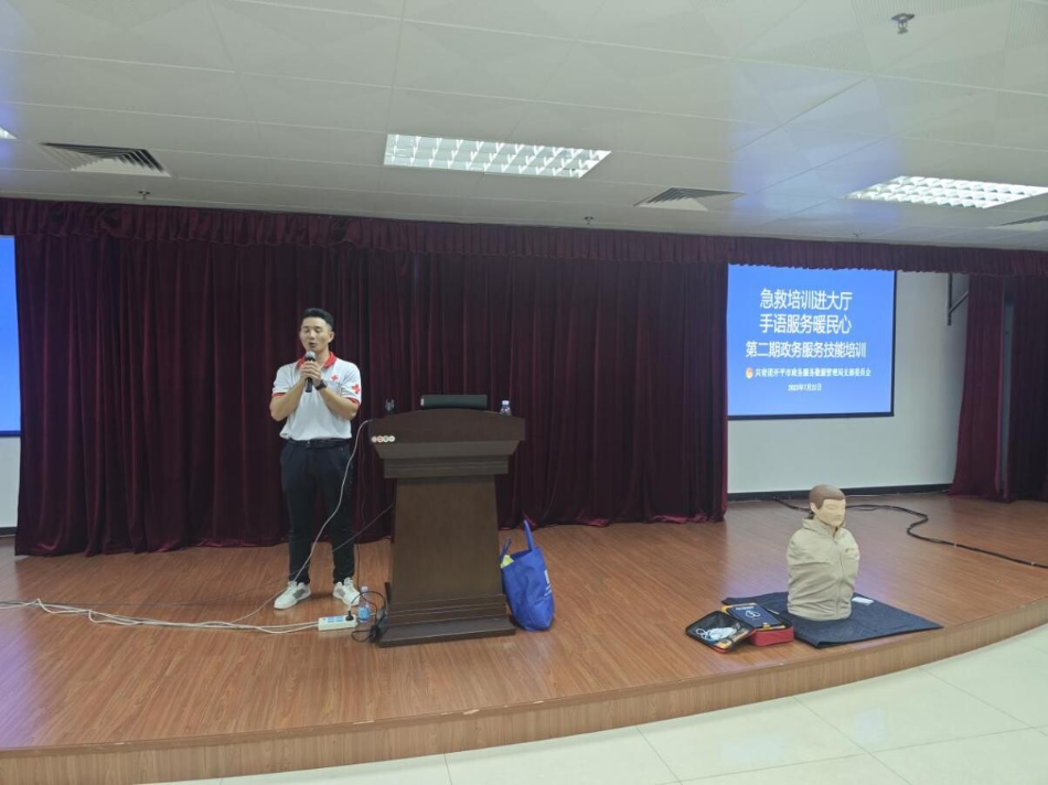 为深入推进平安开平建设,提升政务服务大厅无障碍服务能力,打造“好政务·暖服务”服务品牌,用“初心”“爱心”“真心”架起政务大厅和办事群众之间的温馨桥梁,7月21日下午,市行政服务中心开展急救知识实操培训以及政务服务手语技能培训。 首先,由开平市红十字会蒋立军讲师开展了以“应急始于心