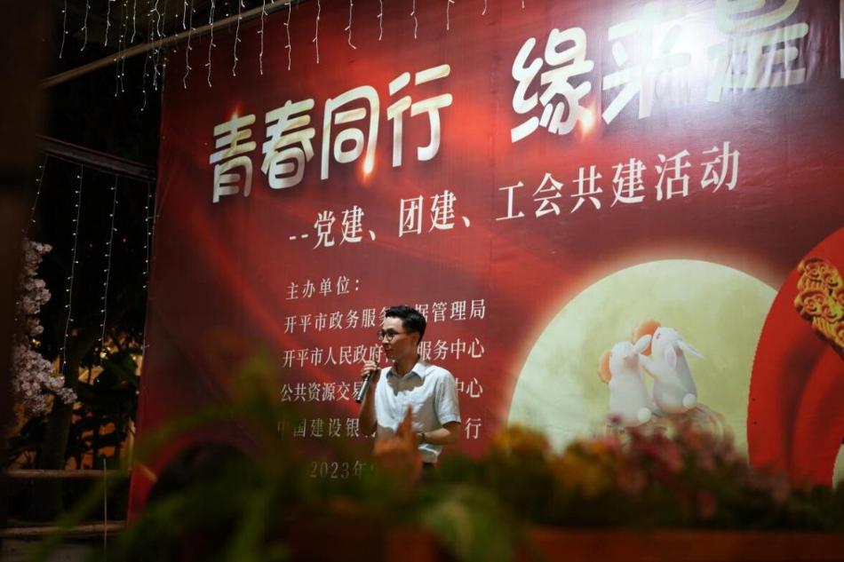 借中秋国庆即将到来之际,为拓宽单身青年的沟通交流渠道,搭建良好的交流互动平台,9月22日,开平市政务服务数据管理局、开平市人民政府行政服务中心、江门市公共资源交易中心开平分中心与中国建设银行开平市支行举办以“青春同行,缘来是你”为主题的党建、团建、工会共建活动。 活动中,中国建设银行开平市支行行长助理劳嘉荣、市行政服务中心副主任周建宁分别进行了发言。一是希望通过共建活动平台、进一步加强政银青年们之间的互动交流,增进情谊,提高党团组织、工会的凝聚力和战斗力。二是希望通过本次活动,青年们可以在活跃轻松的氛围中洋溢风采,连心共建,共同为我市争创国家乡村振兴示范县和省“百千万工程”示范县,推动我市高质量发展作出积极贡献。 活动现场,青年单身职工们通过“情谊‘蹲’升”、“考你反应”小游戏、才艺表演以及“寻‘Ta’合影”等小任务进行互动,让彼此由陌生变得熟悉,逐渐敞开心扉,也让单身青年在游戏中寻找心仪对象,在欢声笑语中寻觅幸福。 此次交友活动为广大单身青年提供了展示自我、放松身心、增进友谊的平台,下一步,开平市政务服务数据管理局将持续聚焦青年人才实际需求,组织开展技能培训、阅读交流等系列活动,不断增强青年干部职工的获得感、归属感。