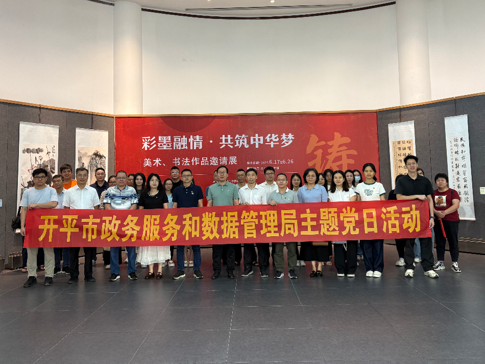 为进一步丰富精神文化生活,传承和发扬中华优秀传统文化,6月20日下午,市政务和数据局组织局机关、下属单位党员干部职工观看"彩墨融情·共筑中华梦"美术书法作品邀请展。 此次邀请展共遴选优秀书画作品100幅,涵盖江门地区多位知名书画艺术家及青少年书画爱好者的心血之作。展览旨在激发广大文艺工作者深入生活、锐意创新的创作热情,推动民族文化艺术传承发展,彰显侨乡文化特色,共同构筑中华民族共有精神家园。 参与活动的党员干部职工表示,本次展览作品艺术感染力强,充分展现了我市文艺工作者群体智慧和团结协作的精神风貌,以此次参观学习为契机,把文化自信转化为服务为民的动力,以更加饱满的精神状态投入工作。