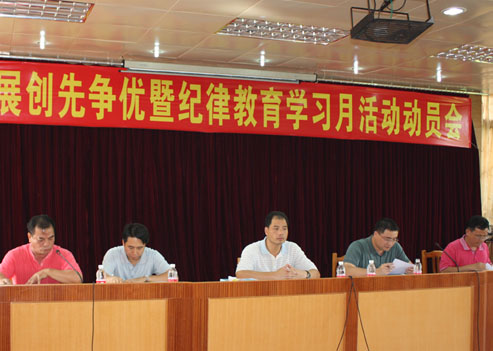 动员会现场 7月20日,龙胜镇召开深入开展创先争优暨纪律教育学习月活动动员会。镇机关干部职工、村(居)委会干部以及站所负责人等170多人参加了会议。 张拓天镇长主持会议 会议由镇长张拓天主持。镇党委委员林文烈就全镇基层党组织和党员深入开展创先争优活动进行了全面部署,明确了创先争优活动的指导思想、总体要求、主要内容、时间安排、方法步骤及组织领导等六个方面内容。本次活动历时两年时间,分为动员部署、全面争创、扎实推进、总结提升四个阶段进行。 镇纪委书记苏学东对全镇开展纪律教育学习月活动作具体部署,要求各单位要把经常性教育与集中教育结合起来,紧紧围绕“加强制度教育,构建拒腐防线”的主题,坚持“教育在前、防范在前、关口前移”的方针,以领导干部为重点对象,以人生观、价值观为教育核心,以制度建设为重要保障,切实把纪律教育学习月活动落到实处。加强对党员干部的党性党风党纪教育,树立正确政绩观、利益观和权力观,增强立党为公、执政为民、依法执政、廉洁从政的自觉性。 镇党委书记冯健楚同志作动员报告 镇党委书记冯健楚在动员讲话中指出,要充分认识深入开展创先争优活动的重大意义,明确“推动科学发展、促进社会和谐、服务人民群众、加强基层组织”的总要求,把握“创建先进基层党组织、争当优秀共产党员”的工作重点,在全镇基层党组织和党员中深入开展创先争优活动。要立足镇情,提高认识,增强纪律教育学习的紧迫感和责任感,把握关键,扎实开展纪律教育学习月活动。要把加强纪律教育与反腐倡廉结合起来,不断增强党员干部的党纪政纪和法治意识,提高党员干部的拒腐防变能力,保证党员队伍的纯洁性和先进性。会议要求各单位要加强组织领导,落实责任,把创先争优活动和纪律教育学习月活动抓实抓好、抓出成效。 随后,镇党委副书记朱乔传达了市委组织部“三推两评”选拔领导干部会议精神,布置干部推荐工作。