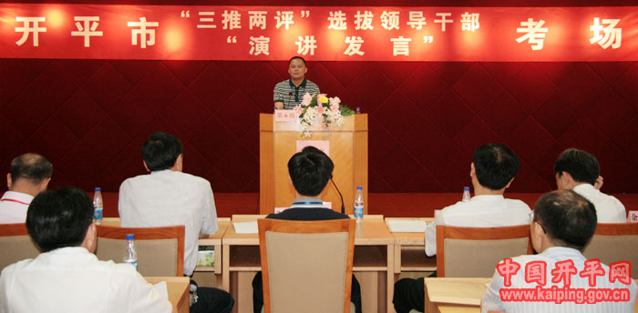 7日,开平市“三推两评”选拔镇(街)副镇长(副主任)“演讲发言”考试在市府大院401室举行。