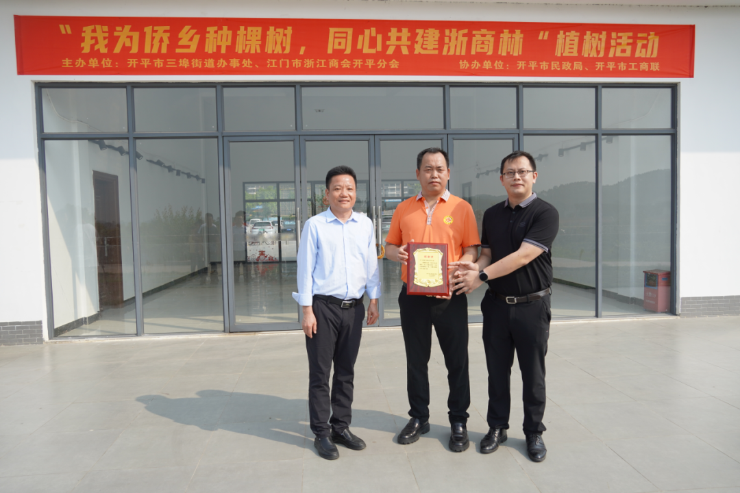 今年以来,三埠街道坚持党建引领,把绿美生态建设作为高效推进“百千万工程”高质量发展的重要抓手,充分发挥基层党组织战斗堡垒和党员先锋模范作用,积极动员社会团体力量参与植绿造林活动,大力营造爱绿、护绿、植绿的浓厚氛围。据了解,江门市浙江商会开平分会在此次植树活动中认捐、认种约90棵树,以实际行动践行企业社会责任,为推动绿美广东生态建设注入了强劲动力。为表彰先进典型,开平市民政局和三埠街道向江门市浙江商会开平分会颁发感谢状。 党群齐心种下“浙商林”,携手打造“浙商绿道” 经过简单而隆重的“浙商林”“浙商绿道”主题林揭牌仪式后,党员干部和商会会员拿起铁锹开始植树,从挖坑植苗、铲土入坑、培实新土到灌溉浇水,充分发扬了不怕苦、不怕累、吃苦耐劳的精神,活动现场一派热火朝天的劳动景象。经过大家的辛勤劳作,一棵棵宫粉紫荆、黄花风铃木等树苗“安家落户”,迎风挺立,整齐有致,在阳光的照射下生机勃勃。新栽的一排排树苗构成了湿地公园里的一道亮丽风景线,为改善生态环境、建设绿美三埠作出了贡献。 植树是我们爱护环境、保护环境的一种重要方式。本次植树活动提高了参加人员的团队合作精神,更牢固树立了“绿水青山就是金山银山”理念,同时传递了绿色正能量,让绿色环保的理念更加深入人心,并带动更多的人加入到播撒绿色、爱护环境、保护大自然的行动中来。 江门市浙江商会开平分会常务副会长兼党支部书记郑如支表示:植树造林是中华民族的优良传统,正是有一代代广东儿女在这片热土上持续植绿,才有了我们今天的绿色景象、树木葱茏。接下来,我们会常态化举办相关活动,同时强化党建工作,发挥桥梁纽带作用,力求进一步提升商会亲和力、凝聚力和影响力。 涓涓溪流,终成江河;棵棵苗木,必能参天。大家种下的每一株苗,浇灌的每一棵树,得到政商同心的滋润和呵护,定会茁壮成长,巍巍参天。下一步,三埠街道将继续贯彻落实广东省委关于推进绿美广东生态建设部署要求,用党建“红”引领街道“绿”,广泛传播绿色理念,积极联合企业、社会组织开展增绿护绿共建活动,持续做好街道绿化工作,以实际行动带动更多人投身到绿化实践中,为建设绿美广东贡献三埠力量!