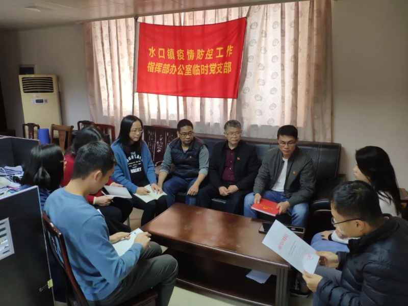 面对疫情,水口镇疫情防控办临时党支部的同志们不退缩、不畏惧,始终冲在战“疫”第一线,用自己的耐心和韧性,以共产党人的坚强意志凝聚起一股强大的力量,以实际行动诠释着一名党员、一面旗帜,一个支部、一座堡垒的真正内涵,让鲜红的党旗在疫情防控一线高高飘扬。