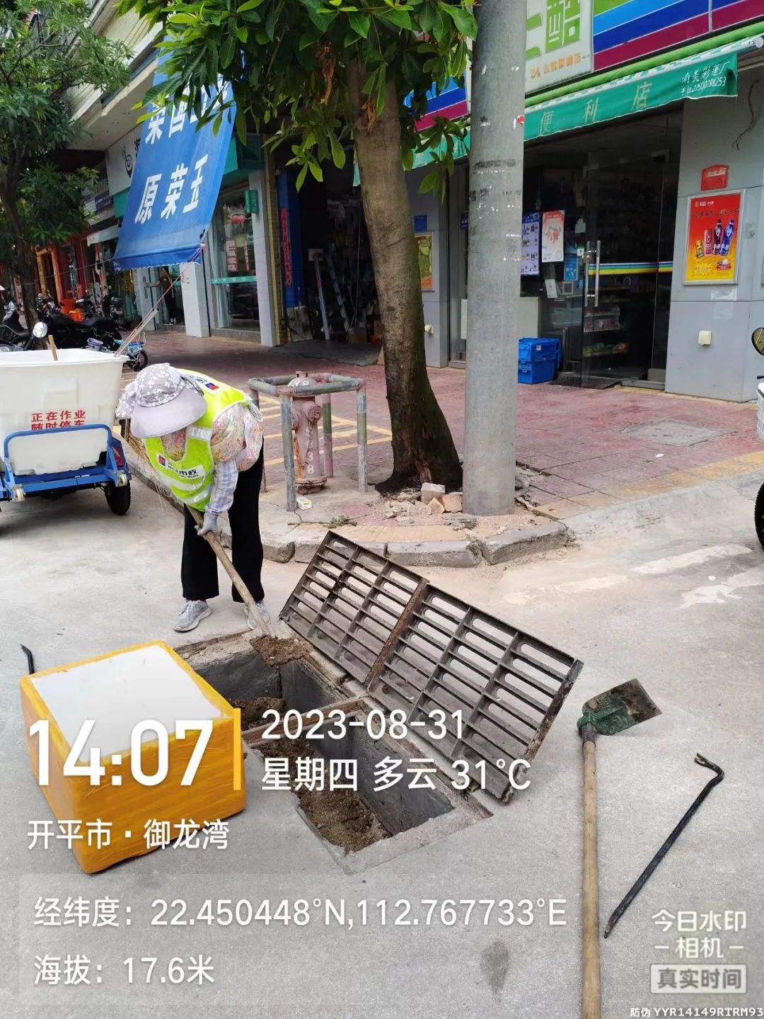 台风来临前夕,水口镇组织环卫工人对辖区内下水道口进行全面疏通清理,确保台风天排水顺畅