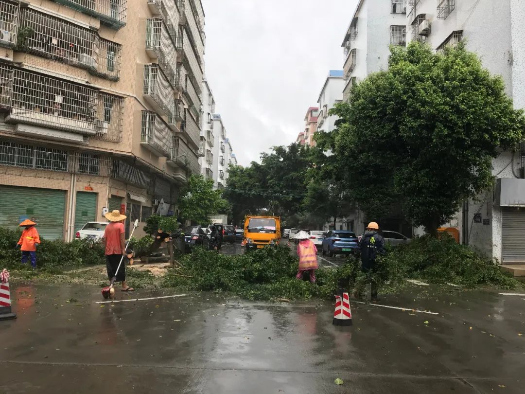 台风中,城环工作人员坚守一线,有的清扫路障,有的疏浚积水、有的维护路灯,齐心协力、争分夺秒减少台风带来的不利影响