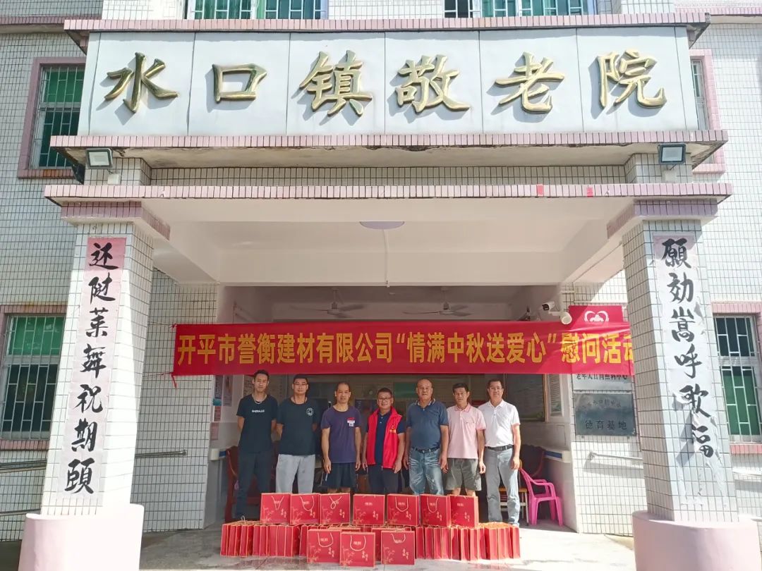 9月18日,爱心企业开平市誉衡建材有限公司联合开庄村委会到水口镇敬老院开展“情满中秋送爱心”慰问活动,向长者们致以亲切的节日的问候和祝福,并关切询问了其饮食起居和身体情况,叮嘱他们要保重身体,同时送上中秋月饼45盒,让老人们感受到浓浓的节日氛围。