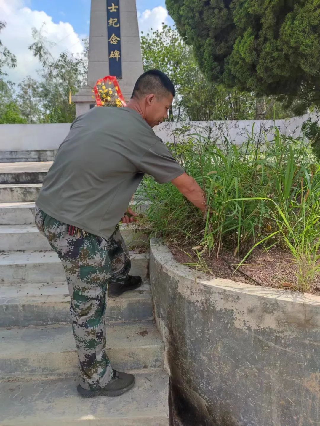 烈士陵园庄严肃穆,纪念碑巍然耸立。怀着对英烈们的崇高敬意,镇、村两级退役军人服务站工作人员分别来到谭国标烈士纪念碑、抗战阵亡将士之墓、九二三抗日战争阵亡将士纪念碑前,向烈士敬献花篮,仔细整理花篮缎带,并清扫纪念碑和烈士墓上的灰尘。经过大家一番努力,场地周围焕然一新。随后,全体人员在纪念碑列队肃立、鞠躬默哀,追忆英烈事迹,深情寄托哀思,感悟革命精神,激励担当作为。