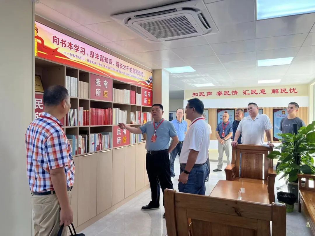 在水口镇人大代表中心联络站,调研组一行实地查看站点“三化”和“数字人大”建设等工作情况,深入了解联络站接访区、阅读区、办公区、会议区、代表风采展示墙、户外宣传栏等功能分区规划布局,并与江门市、开平市人大代表进行面对面沟通交流,详细了解代表履职以及工作、生活情况,认真听取了代表们对于群众普遍关心的热点、难点问题的意见建议,同时就代表们提出的旧城区改造、企业员工子女入学等问题进行深入探讨交流。