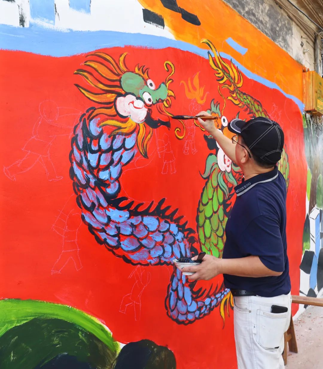 “在开始今天墙绘前,我们已经提前进行了两次现场勘察,结合当地人文内涵、民俗风情和自然景观,精心构思了系列草图,希望通过创作反映时代新貌和群众新生活的作品,助力‘百千万工程’和美丽乡村建设。”谈起本次活动的意义和初衷,江门市政协专职常委、书画院秘书长招文娟如是说。