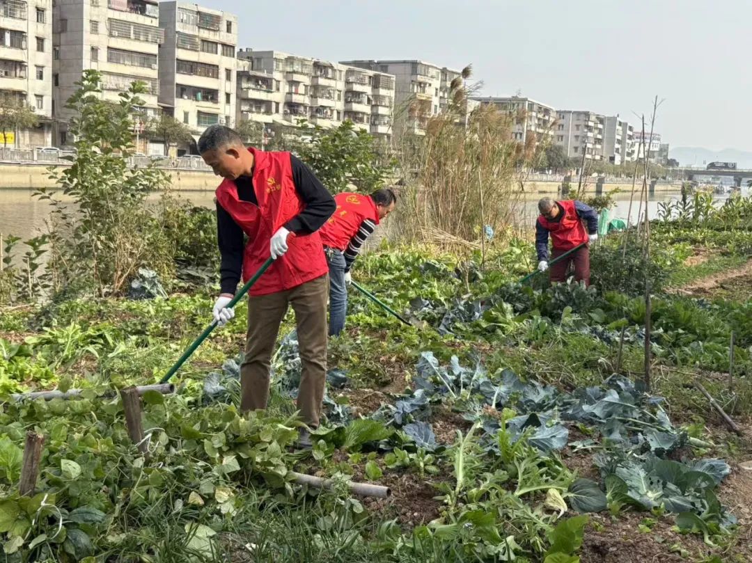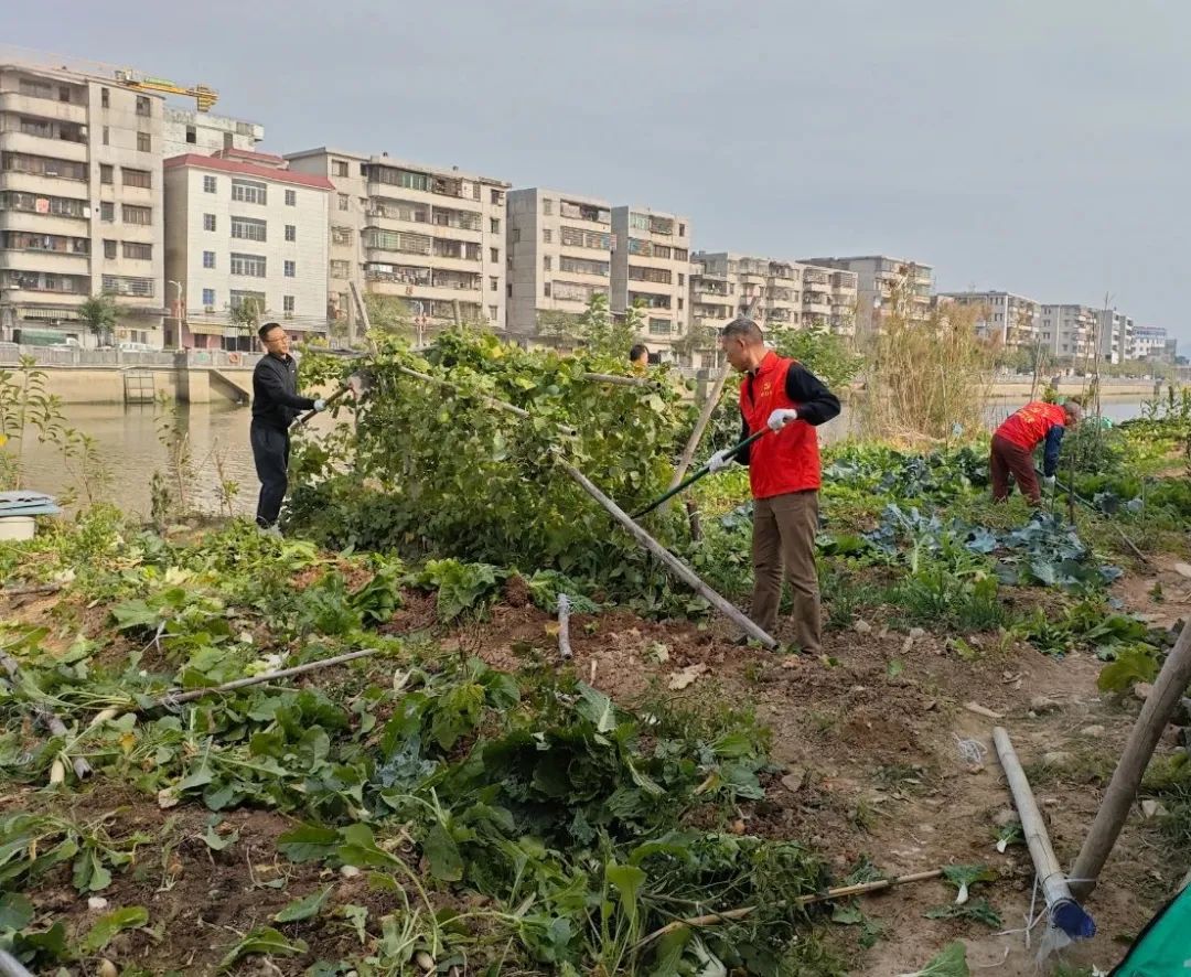 活动现场,青年志愿者们手持锄头、铲子、垃圾袋等保洁工具,分组分工对新桥水龙东村段河岸非法开垦区域进行环境复原,通过铲除遗留菜地、拔除蔬菜根茎、翻整裸土等方式,清理整治乱占河滩种植的“菜地”,并将堆积的垃圾进行彻底清扫。同时,志愿者向种菜居民耐心做好解释工作,呼吁广大居民不要在河道乱垦乱种,共同爱护河道环境,保障河道通畅。