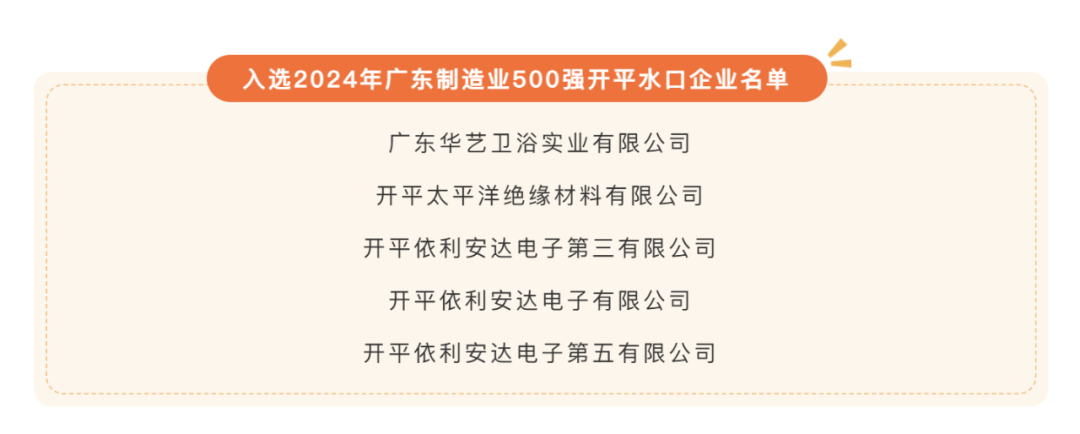 广东省制造业协会、暨南大学产业经济研究院、广东省发展和改革研究院联合发布《2024年广东制造业500强企业研究报告》(下称《报告》)。据悉,开平市水口镇5家企业入选广东制造业500强,为高质量发展提供有力支撑。
