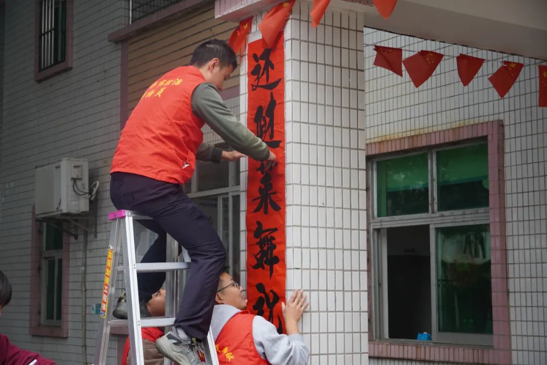 一大早,颐养院里便开启了忙碌模式。青年党员团员志愿者、“双百”社工和颐养院工作人员一起精心装扮,为院内每个角落都换上了“新衣”,喜庆的“福”字、吉祥的春联、火红的灯笼,还有寓意吉祥的生菜和蒜头,处处散发着浓浓的年味。