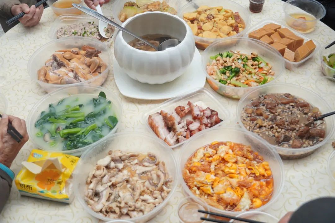 伴随着互动环节的阵阵欢声笑语,一道道香气四溢、热气腾腾的菜肴也陆续端上餐桌。为了让老人们在这顿团年饭中尽享年味,又能满足他们不同的口味偏好,院工和志愿者们充分考虑了老人们的口味和营养需求,精心准备一场丰盛的年夜饭。白鸽参须汤、白切鸡、烧味拼盘、猪手眉豆、香菇肉饼、甜酸蛋等等一道道本地应节年味托起了老人们“舌尖上的幸福”。