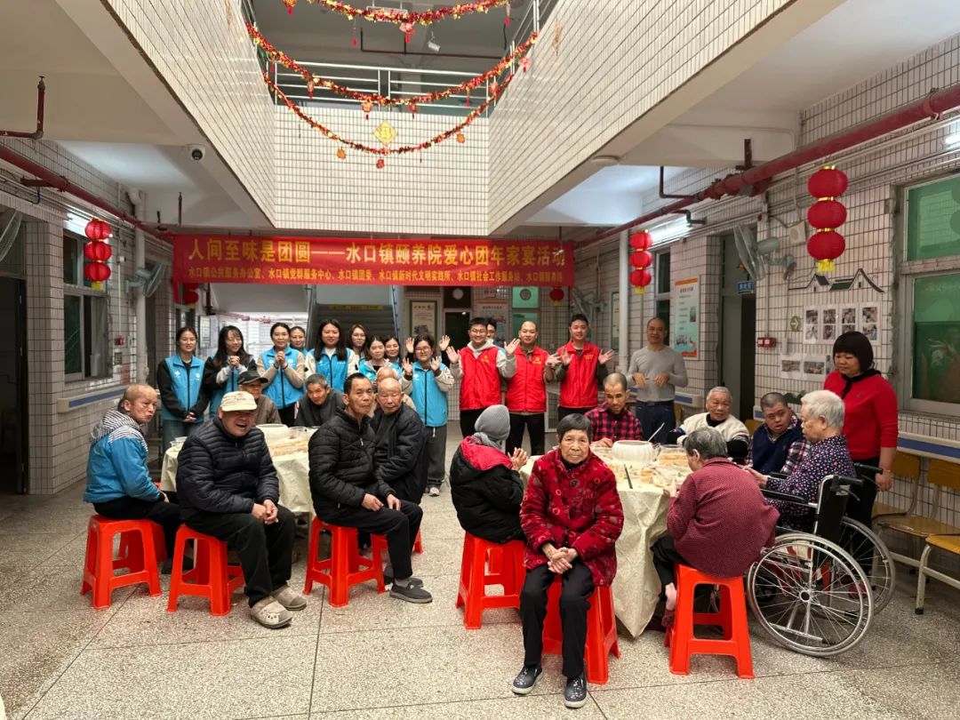 为进一步弘扬中华民族尊老、敬老、爱老、助老的传统美德,切实深化做好长者民生关爱服务,让颐养院的老人们过上不一样的新年,1月24日,水口镇党群服务中心、水口镇团委、水口镇新时代文明实践所、水口镇社会工作服务站、水口镇颐养院联合举办的人间至味是团圆——水口镇颐养院爱心团年家宴活动,志愿者们与在院老人共聚“幸福团年饭”,让“家”的味道温暖传递。