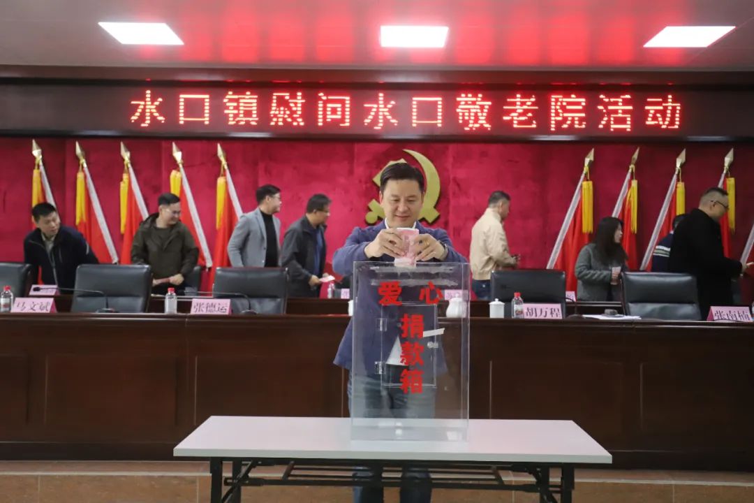 会后,水口镇开展春节慈善捐款慰问敬老院活动,班子成员率先垂范,带头捐款,全体干部职工积极响应,踊跃参与,将一份份饱含深情的爱心投入捐款箱中,充分展示了水口镇广大干部职工大爱无疆的精神风貌和强烈的社会责任感。