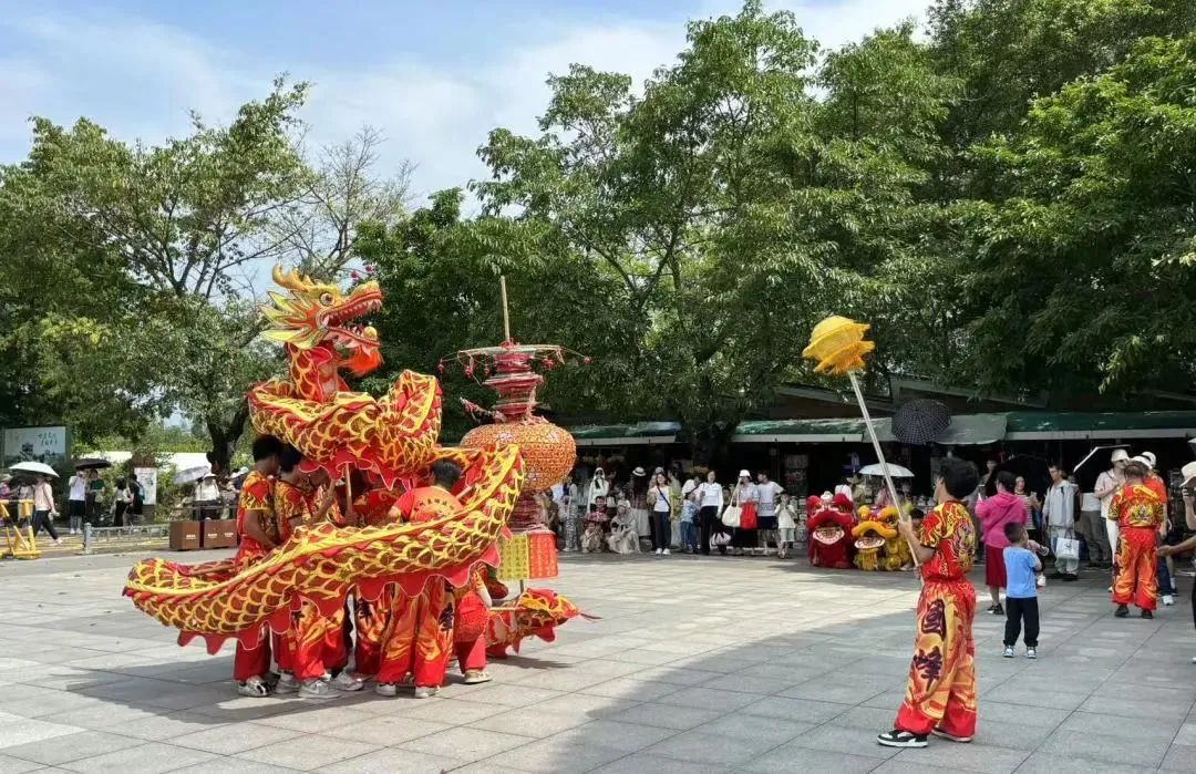 当日,立园景区内游客如织。一群身着醒目练功服的表演者英姿飒爽,高举色彩斑斓的舞灯,舞动气势恢宏的舞龙,精神抖擞地穿梭游行于典雅静谧的立园内,引得游客纷纷停下脚步驻足观赏,不少人更兴致勃勃地跟随表演队伍一路前行,现场气氛热烈欢腾。