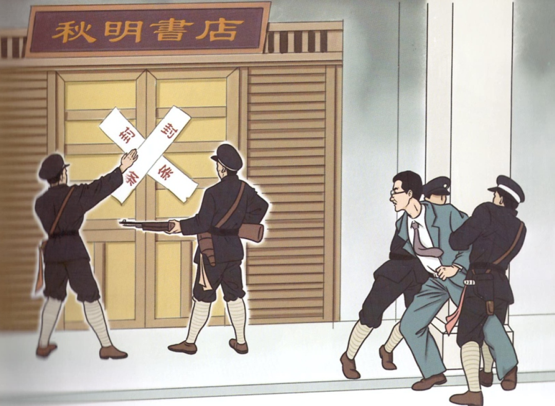 1928年冬,反动当局派出军警特务查封了书店,逮捕了谭国钧、谭国标兄弟等人,这是谭国标第一次被捕入狱。由于敌人没有找到他们想要的所谓“证据”,在勒索了谭家一笔巨额保释金后,于1929年初,将谭国标兄弟等人释放。