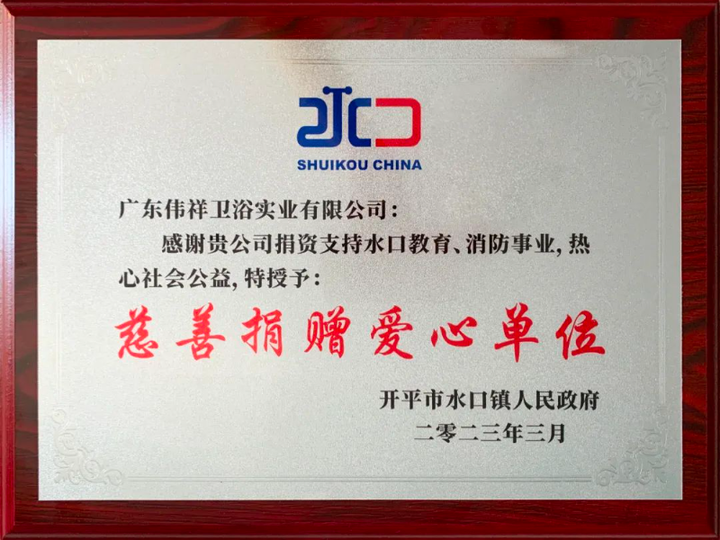 伟祥卫浴在自身发展的同时,始终自觉担当、积极履责,以大爱之心投身公益、回馈社会,以点滴之爱汇聚暖流、服务群众,在脱贫攻坚、乡村振兴、慈善募捐、疫情防控等方面做出了积极贡献,展现出了高度的责任担当与家国情怀。