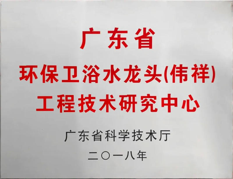 2018年,伟祥卫浴被授予广东省环保卫浴水龙头工程技术研究中心称号