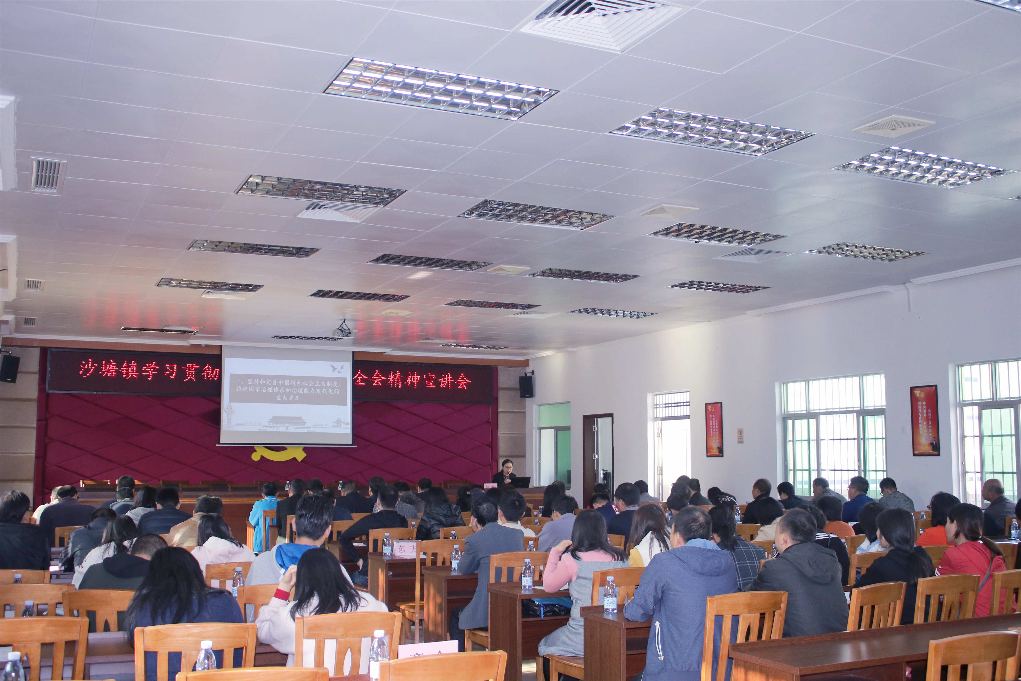 为深入学习宣传贯彻党的十九届四中全会精神,1月15日上午,沙塘镇邀请开平市委宣讲团成员、市委党校老师陈利,召开学习贯彻党的十九届四中全会精神宣讲会。镇领导班子、机关干部和下属单位主要负责人、村(社区)书记、主任、两新等基层党组织书记(负责人)共100余人参加了学习。