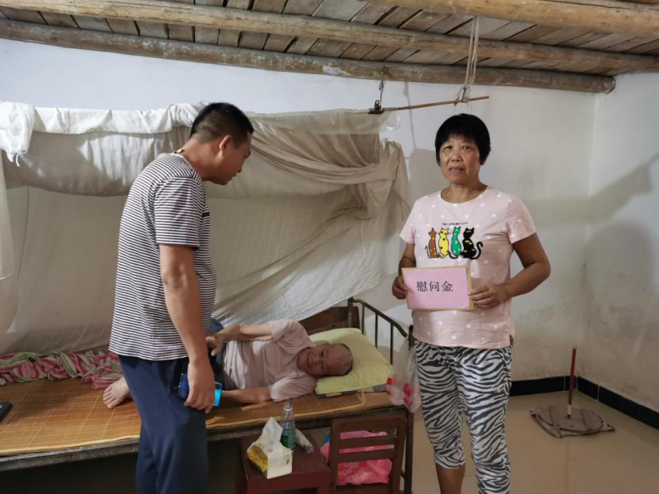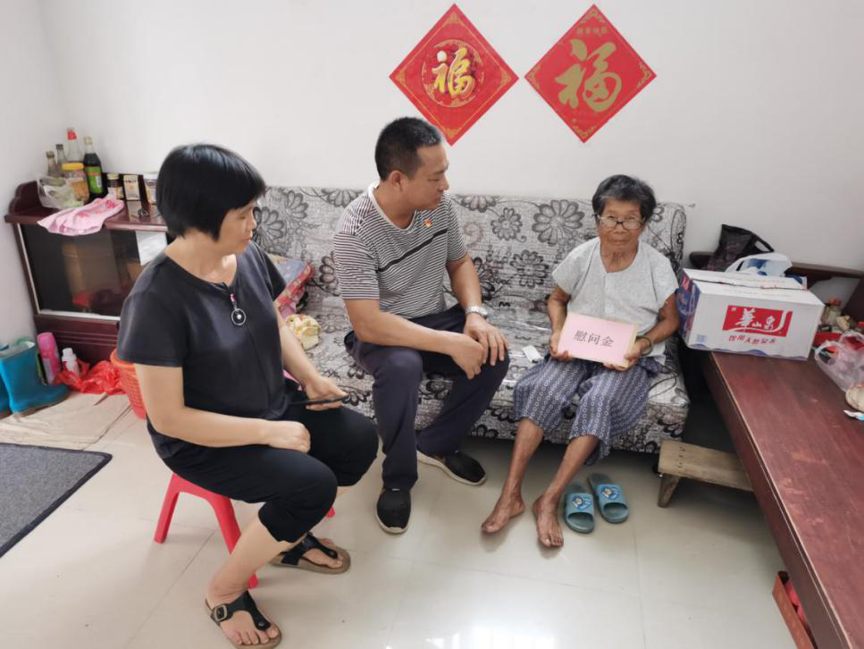 7月31日下午,沙塘镇党委委员、武装部长杨炳钦带领慰问组,先后到东方村和泰山村探望烈属劳合祥、李银桂,代表镇委镇政府向烈士家属、退役军人、现役官兵的家属们送上节日问候和祝福,仔细询问烈属的生活环境和身体状态,向他们致以诚挚的问候,并双手送上慰问金。同时叮嘱随行人员多关心、照顾老人家的生活,积极帮助他们解决实际困难和问题,切实传递党和政府的温暖和关怀,让英雄的父母安享幸福晚年。