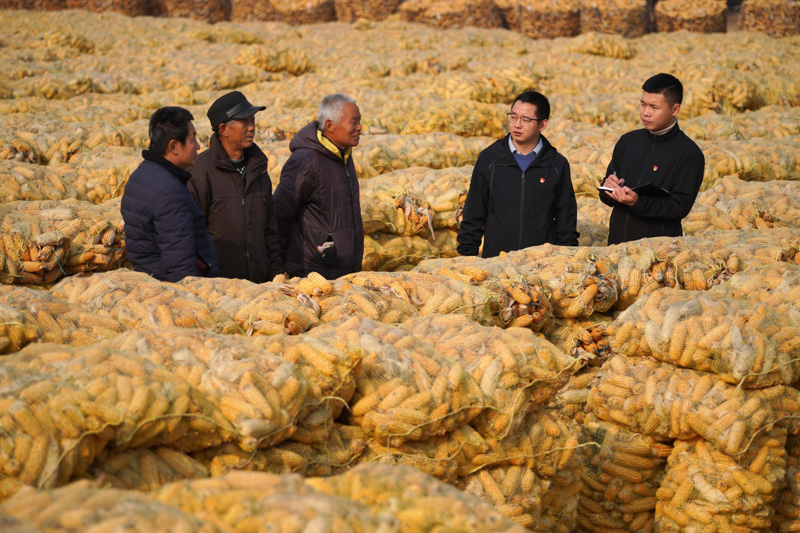 河北省巨鹿县纪委监委工作人员(右一和右二)在巨鹿县西郭城镇柳洼村向村民了解扶贫政策落实情况(2020年12月10日摄)。新华社记者 牟宇 摄