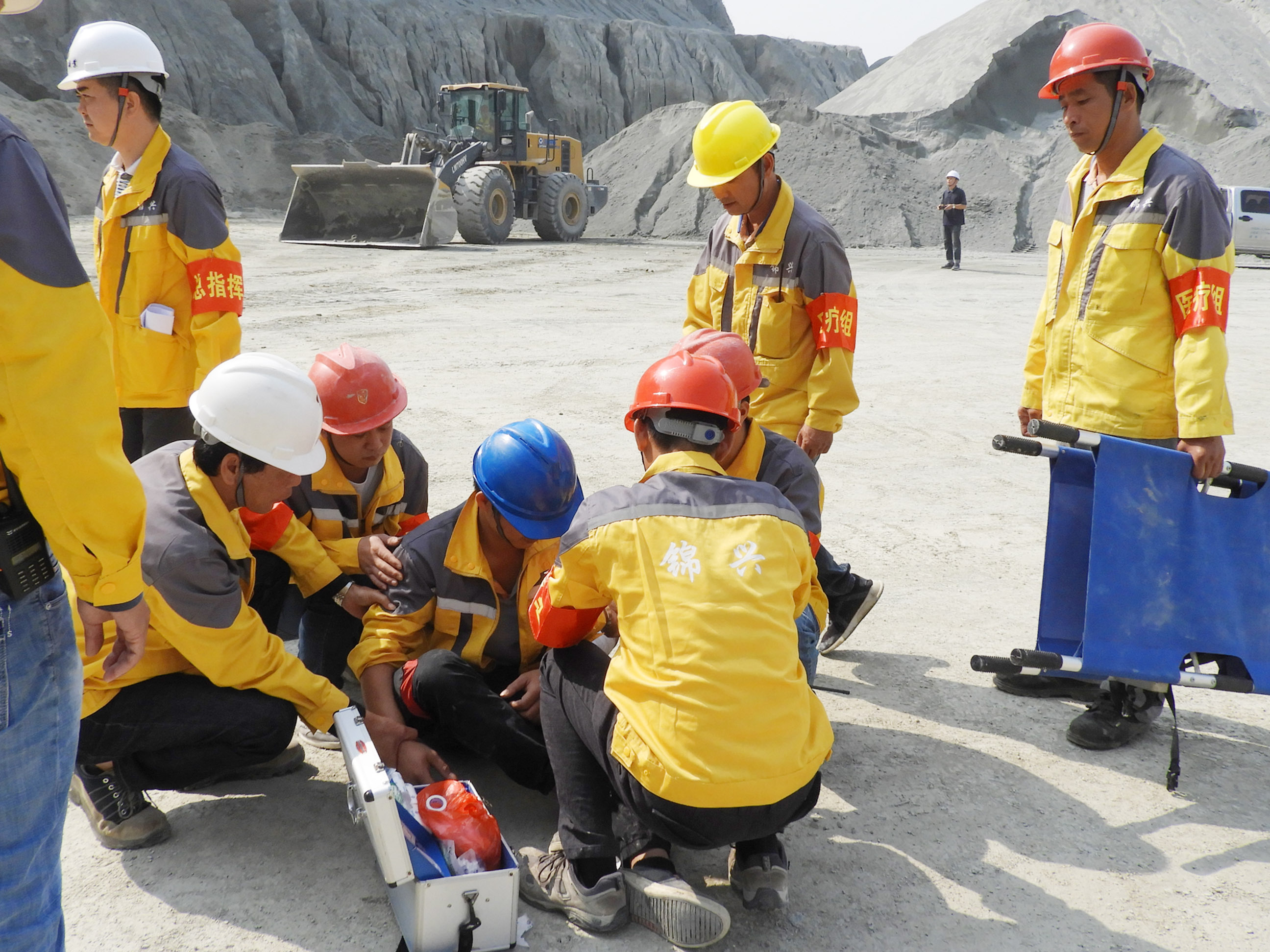 本次演练模拟企业在生产作业过程中,采场边坡发生岩体坍塌,边坡落石导致现场作业人员被掩埋的情况,设置事故报警、人员撤离及警戒、抢险救援、医疗救护、排除险情等场景。模拟事故发生后,现场安全员及时向企业负责人报告,负责人立即启动事故应急预案,指挥企业应急救援队伍赶到事发点,对伤员进行包扎并把伤员及时撤离现场送到医院救治。企业组织人员按照应急预案职责分工开展救援,整个演练过程组织严密、环节紧凑、现场紧张有序,取得良好示范效果,达到了预期演练目的。