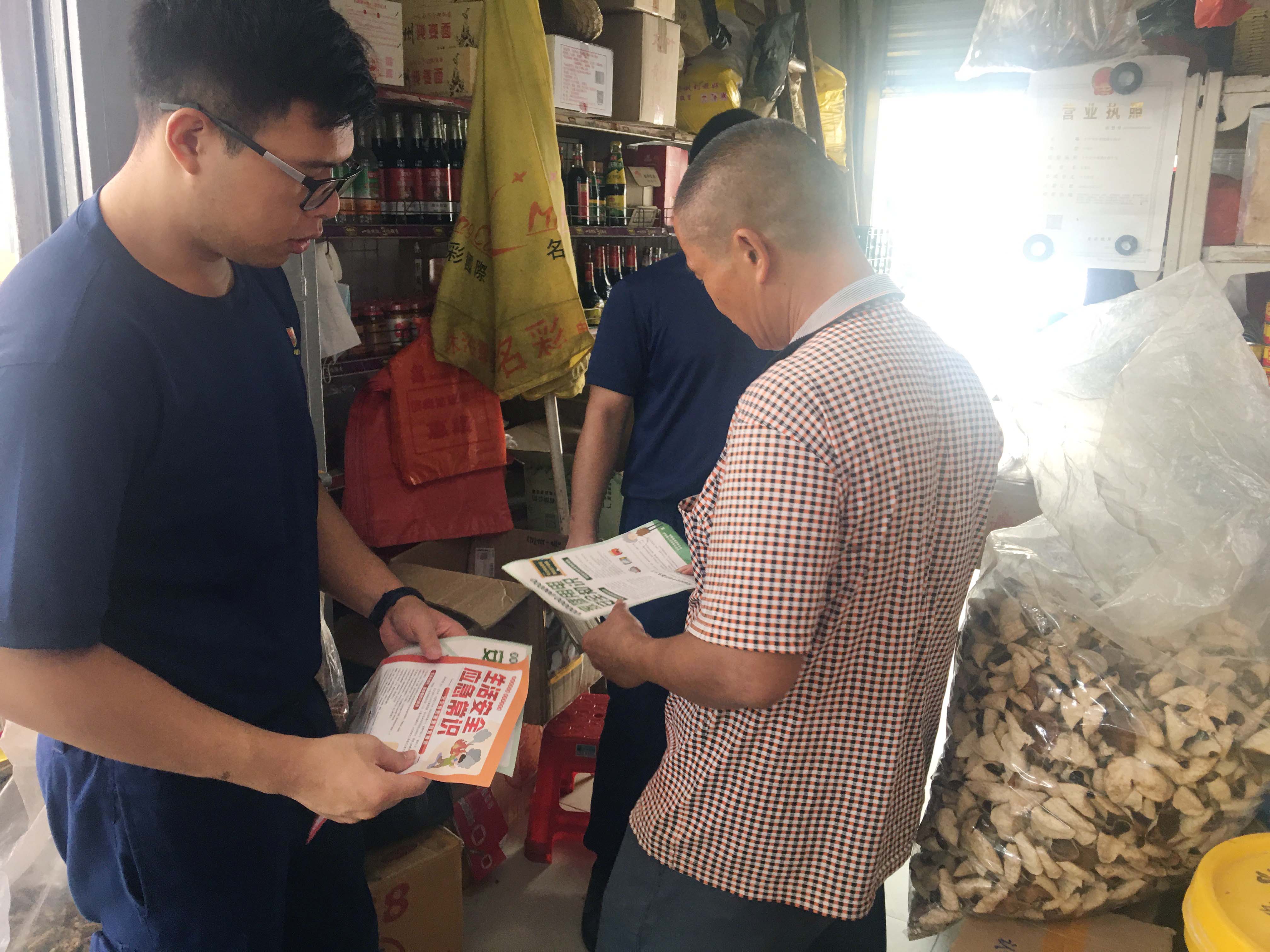 27日上午,检查组到沙塘镇的农贸市场开展“三现”(现金、现场、现货)消防安全整治,重点检查安全出口、疏散通道、消防设施等安全状况,排查农贸市场内是否存在违规住人、用火用电是否规范安全等隐患,深入检查沙塘市场消防安全责任制贯彻落实情况。对检查过程中发现的消防通道阻塞、电动自行车摆放不当、安全防范不到位等问题,迅速向经营户反馈并提出具体整改要求;督促市场负责人落实安全生产主体责任,提高市场内经营户消防安全隐患的自查自纠能力,为广大群众提供安全、优质的消费环境。