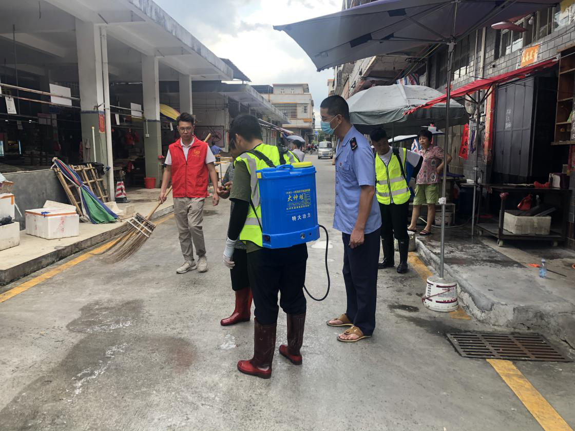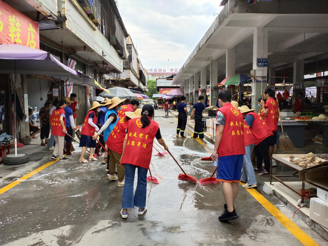 活动中,全体党员干部和志愿者深入到沙塘农贸市场、三鸟市场及其周边居民区,开展全面彻底的预防性消毒及排水管渠清疏行动,并对排水管渠等基础设施维护,大家齐心协力清扫房前屋后和周边摊位积存垃圾、冲刷街道淤泥,对农贸市场进行全方位清洁。在党员干部和志愿者的示范带动下,商户群众也纷纷加入本次爱国卫生运动中来,表示今后将以履行好“门前三包”责任为落脚点,全力维护创建成果,助力城市品质提升。